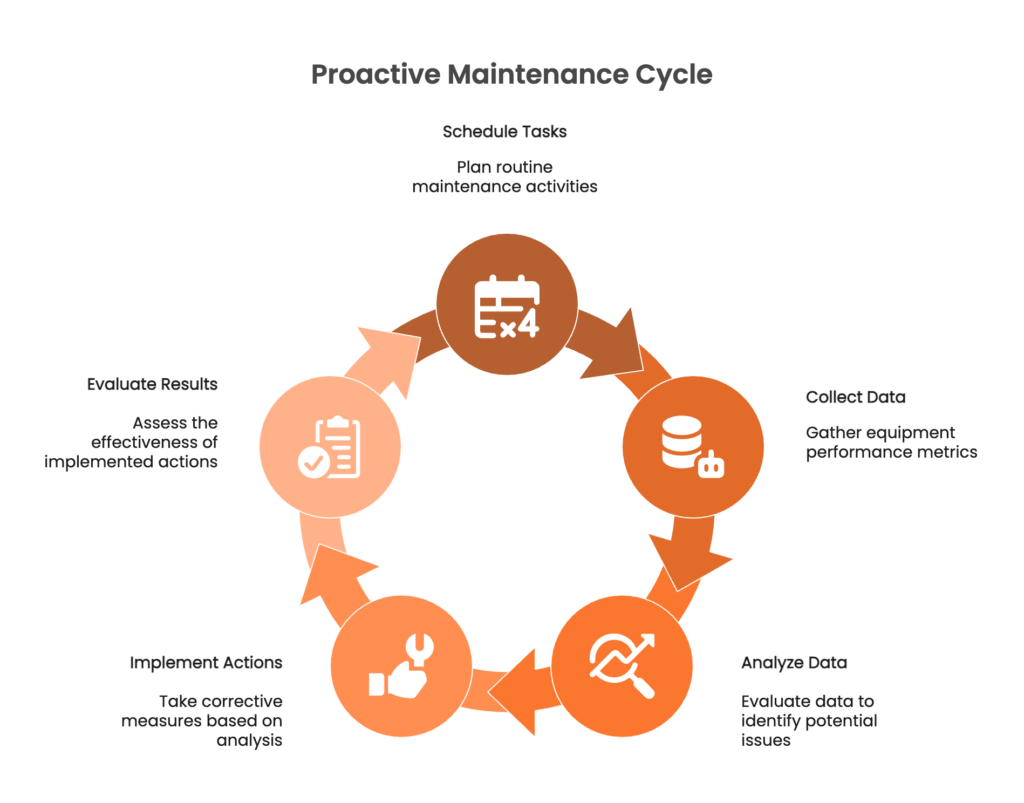 Proactive maintenance prevents failures from occurring. It relies on scheduled tasks, equipment data, and analysis. This strategy reduces surprise breakdowns and extends the life of assets.